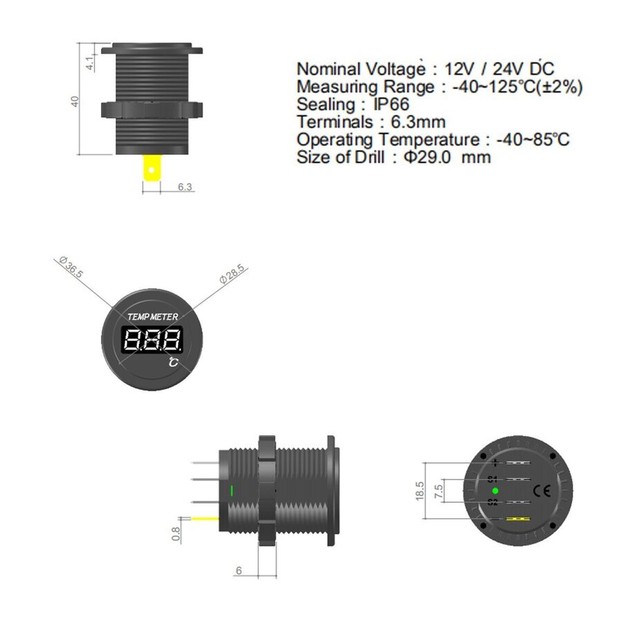 Digitální teploměr je určen pro indikaci teploty v rozsahu od - 40oC do + 125oC. Teplota se zobrazuje na 3-číselném modrém LED displeji.