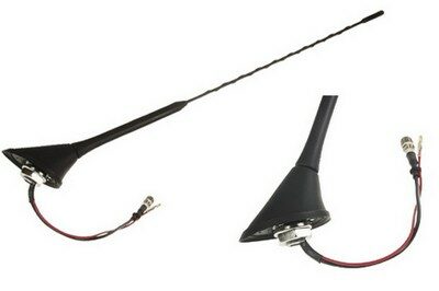 Univerzální střešní anténa AM-FM do zadní části střechy se zesilovačem, pevný úhel sklonu 60°, černý laminátový prut s vnějším závitem M5 délka 40 cm, kabel 10 cm s konektorem Hirschmann samec, montážní…