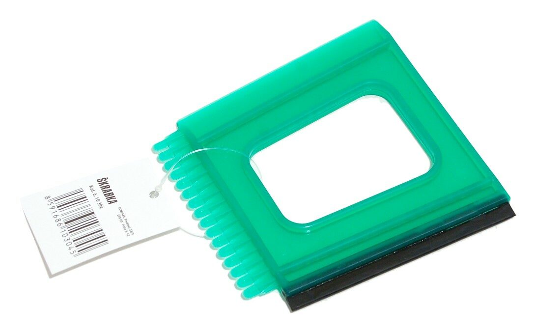 Plastová škrabka se třemi stranami (sníh, led, voda). Materiál plast, různé barvy.