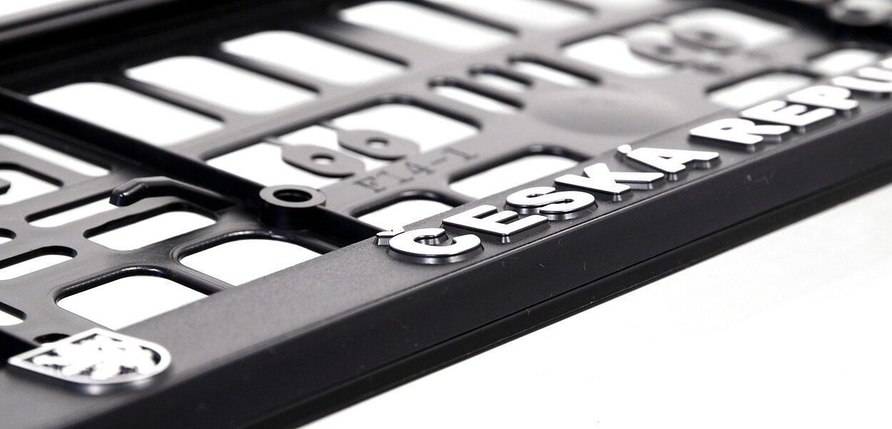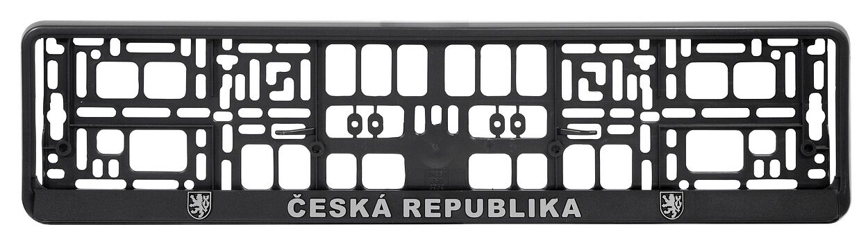 Plastová podložka pod tabulku registrační značky (RZ) nebo státní poznávací značky (SPZ) běžných rozměrů. Podložka je opatřena plastickým 3D nápisem Česká republika a znaky lva, jejichž povrch je chromován.