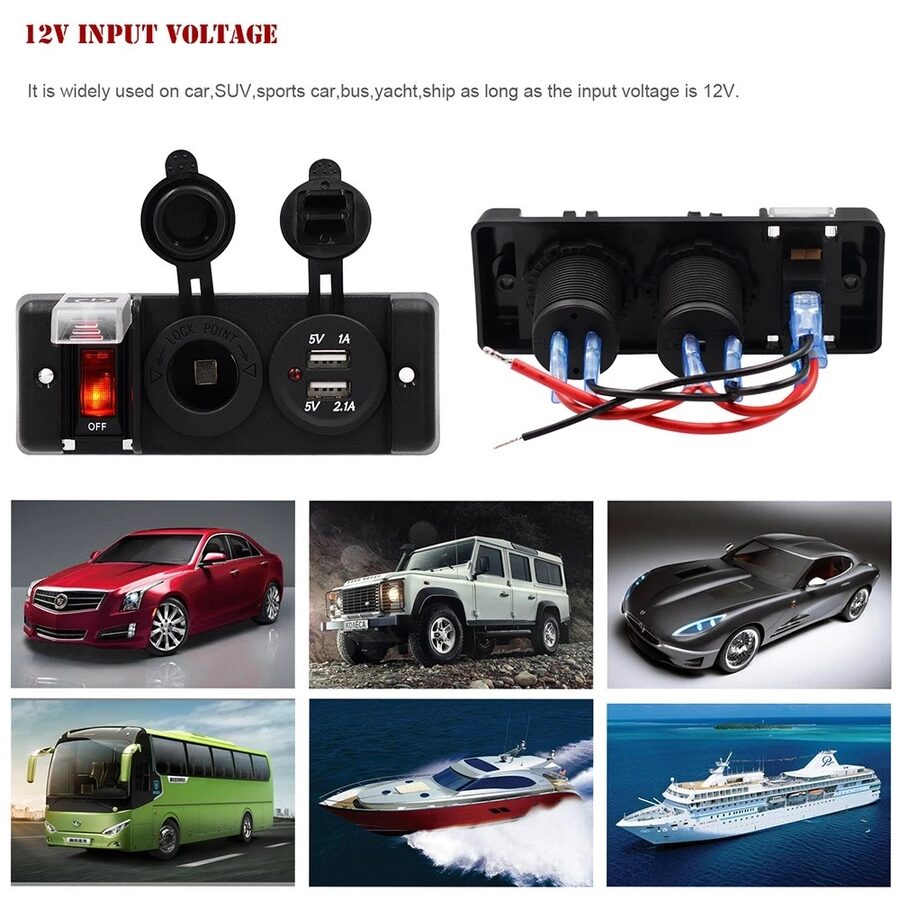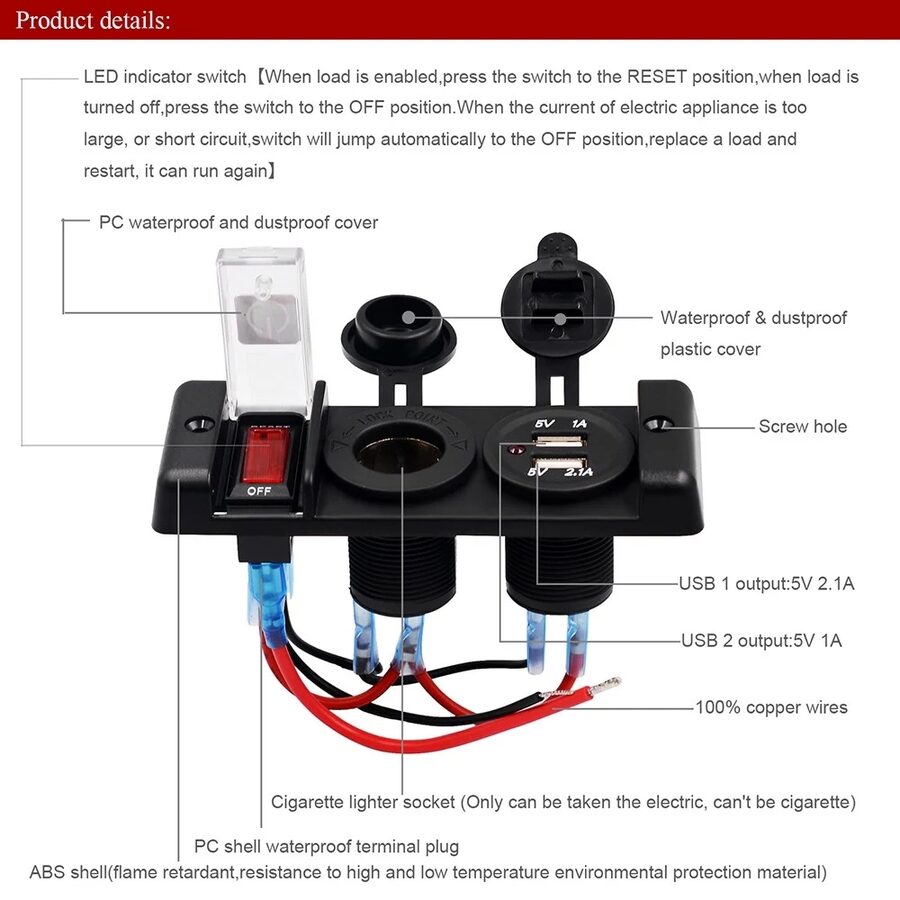 - Dvojitá zásuvka do panelu 1x CL, 2x nabíječka USB + vypínač s jističem 16A