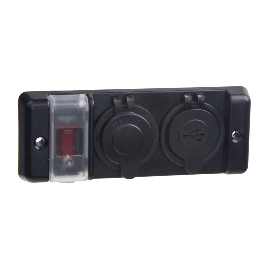 dvojitá zásuvka do panelu 1x CL (max. 20A) + 2x nabíječka USB voděodolná.