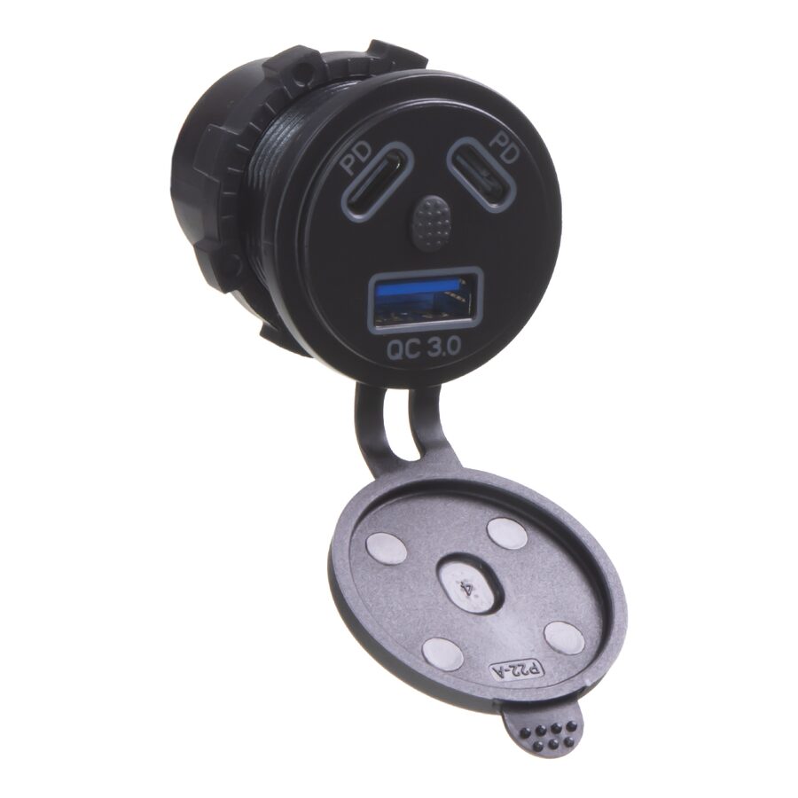 3x USB nabíječka (1x USB, 2x USB-C) do panelu, s krytkou proti prachu a vlhkosti.