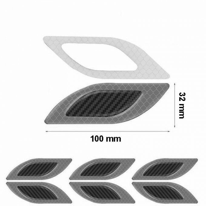 Samolepící deflektory jsou vyrobeny z epoxidové pryskyřice s černou imitací carbonu a s červenými reflexními prvky, který odráží světlo zpět k pozorovateli.