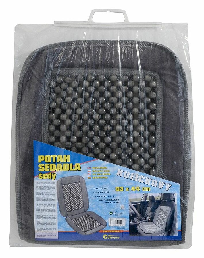 Potah s pevným lemem, výplň z dřevěných kuliček, které příjemně masírují tělo, podporují krevní oběh, pomáhají snižovat únavu i bolestivost zad a umožňují proudění vzduchu mezi sedadlem a zády řidiče.