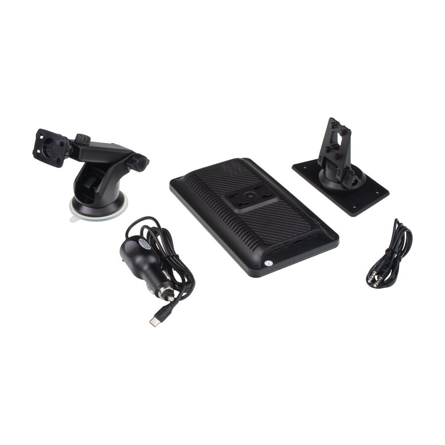 Obsah balení: Monitor, držák s přísavkou, držák pro pevnou montáž, napájecí kabel s CL koncovkou, AUX kabel.
