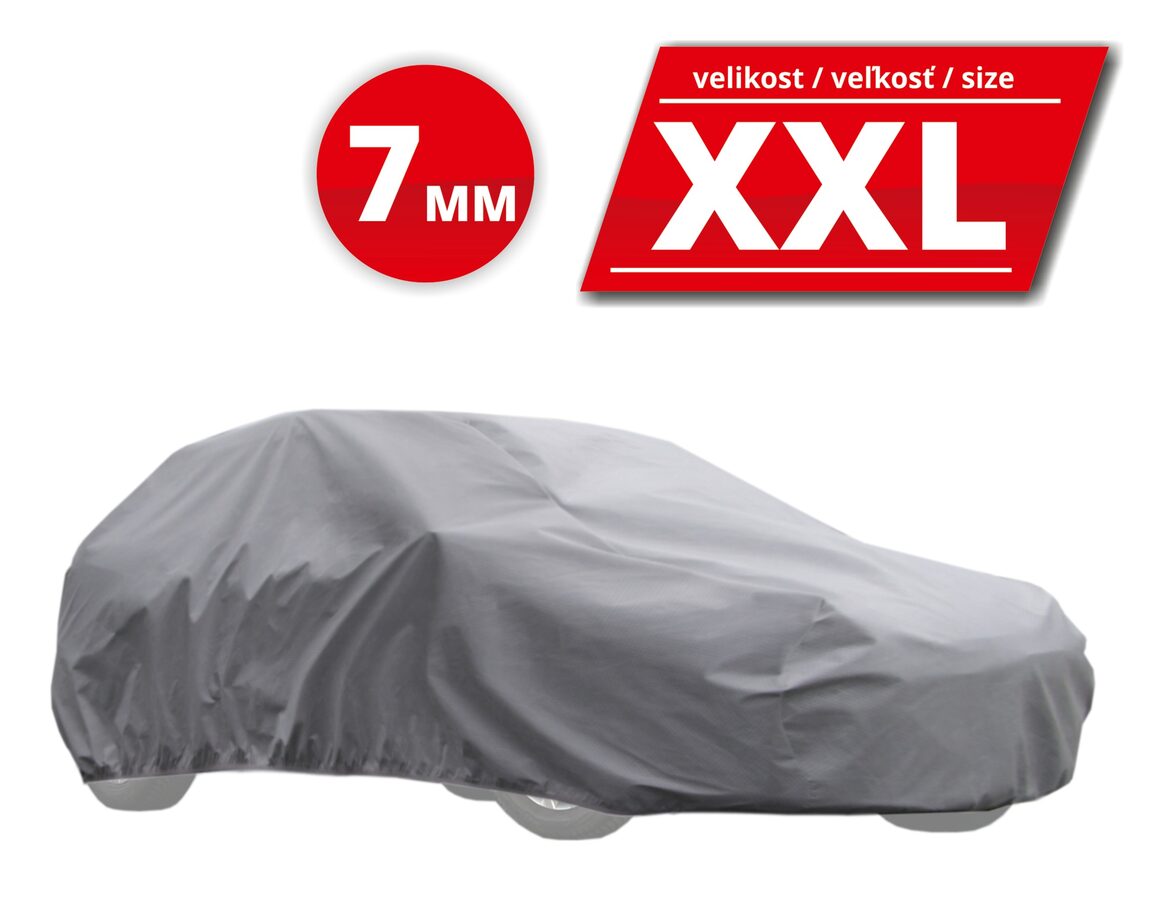 Plachta proti kroupám s vícevrstvou konstrukcí (5 vrstev). Vrchní část se silnou ochrannou vrstvou a pěnou tlumící nárazy poskytuje perfektní ochranu proti krupobití. Vnitřní podšívka je šetrná k laku karoserie.