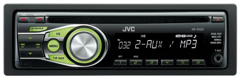 - JVC autorádio s CD, MP3, zelené podsvícení, připojení pro Bluetooth adaptér