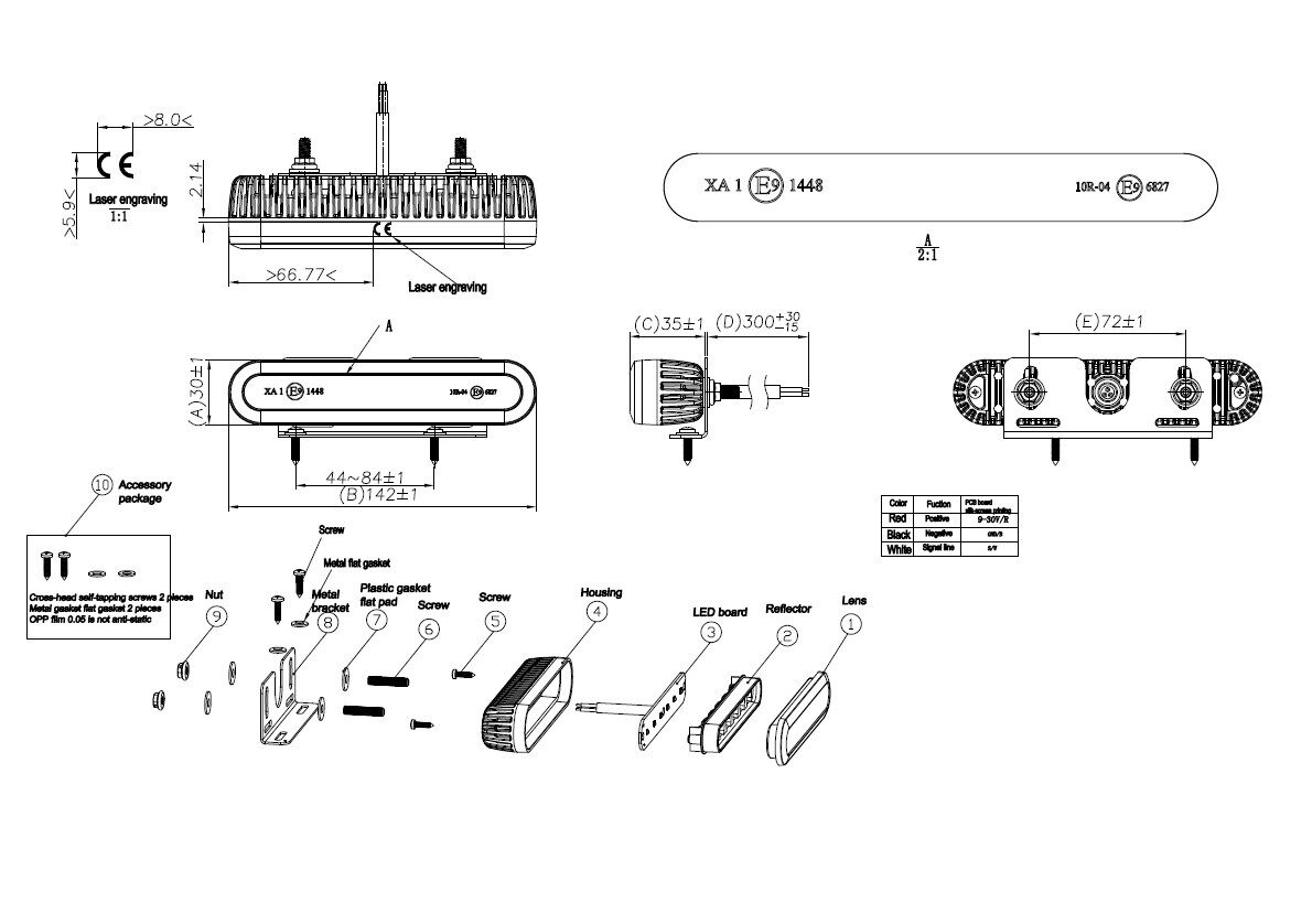 • bílým vodičem se mění program blikání (+), spojením bílých vodičů se synchronizuje s dalšími světly