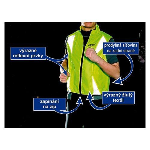 Výstražná reflexní vesta vhodná pro různé účely. Reflexní prvky na přední i zadní straně. Zapínání na zip, zadní strana vesty z prodyšného síťového materiálu.