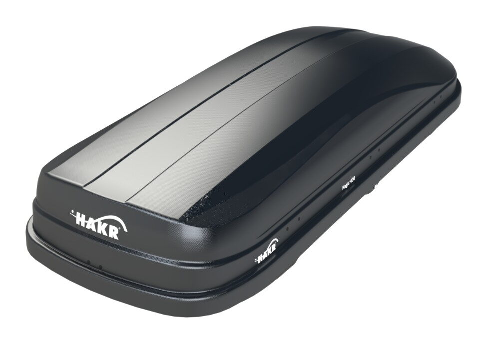 Střešní box firmy Hakr s objemem 400 litrů, černý lesklý.
