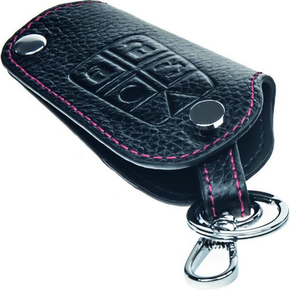 Černé kožené pouzdro pro autoklíč Volvo. Chrání klíč před pádem, znečištěním a opotřebením (vhodné pro služební vozidla) a navíc vypadá velmi elegantně. Ovladač lze ovládat přímo v pouzdru, při použití klíče stačí pouze vyklopit. Vyrobeno z velmi kvalitní kůže s prošitím červenou nití.