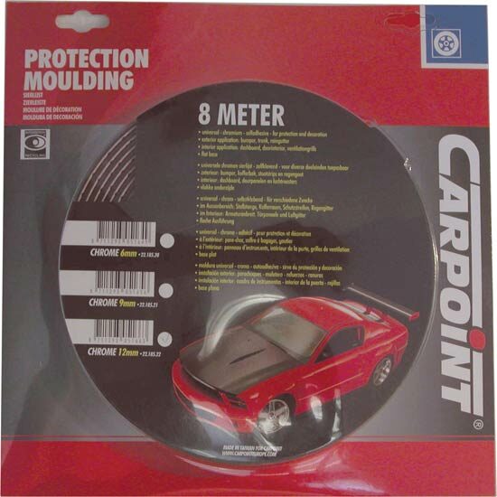 univerzální chromová lišta, délka 8m, šířka 12mm, samolepící uchycení, vhodná např. na boky vozidel pro zabránění odření boku vozidla při parkování vozidel blízko u sebe či blízko překážek, vhodná jako dekorace např. kolem masek chladičů apod., vysoce elegantní chromový povrch, snadná a rychlá montáž na všechny typy vozidel