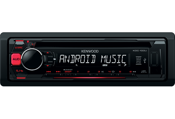 Kenwood KDC-100UB: CD/MP3/WMA/AAC/FLAC autorádio s USB a AUX in vstupem a 1 párem RCA výstupů s červeným podsvícením.