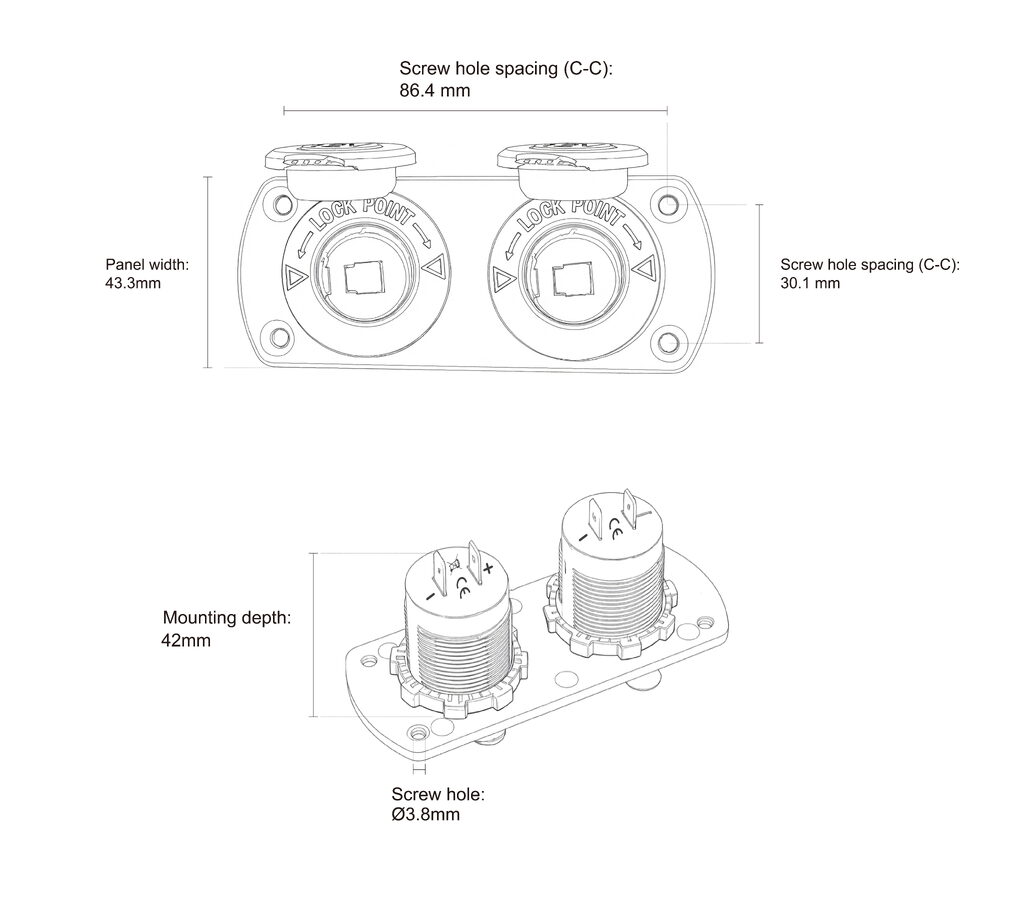 - Dvojitá CL zásuvka do panelu