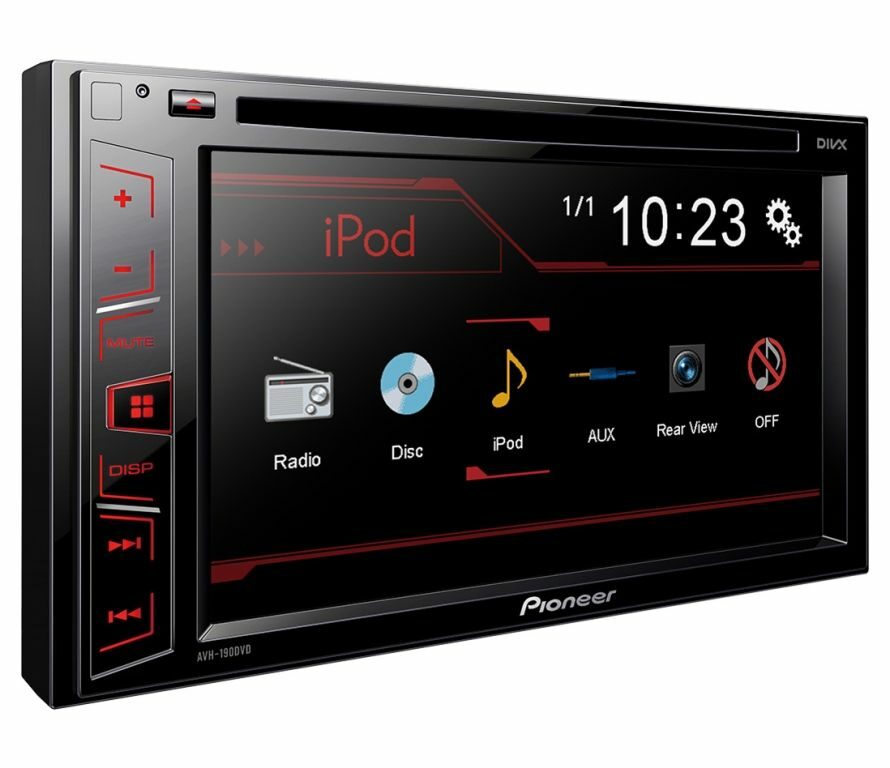 Pioneer AVH-190DVD: 2-DIN CD/DVD multimediální autorádio s 6.2" dotykovým displejem, zadním USB, AUX vstupem a podporou iPod/iPhone.