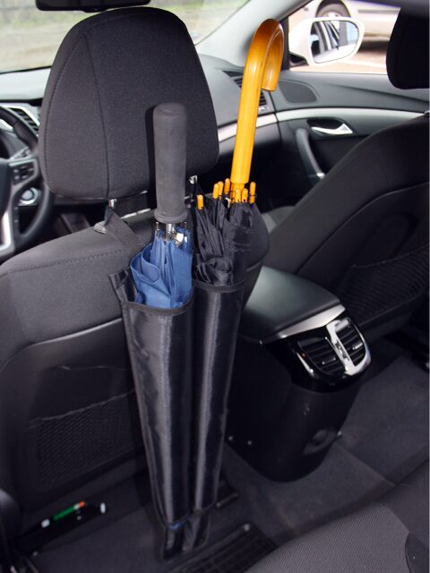Univerzální držák deštníků představuje ideální způsob uskladnění deštníku v autě pro všechny případy. Jednoduše jej připnete na opěrku hlavy předního sedadla a můžete uskladnit až 2 deštníky. Díky vestavěným kapsám na spodní části můžete bezproblémově uskladnit i mokré deštníky a neušpiníte tak auto.
