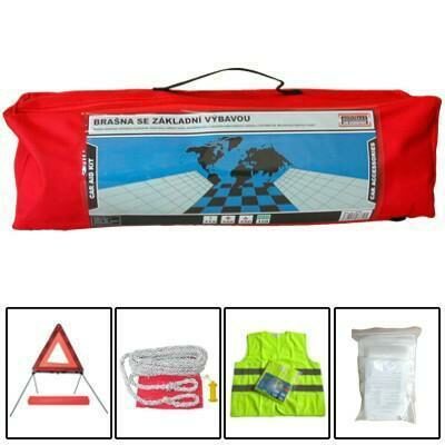 Brašna obsahuje:- výstražný trojúhelník- tažné lano- reflexní vestu- autolékárničku Odpovídá vyhlášce č. 283/2009 Sb. MDObsahuje lékárnu nová vyhláška+výstražný trojúhelník+lano+refkexní vestu.