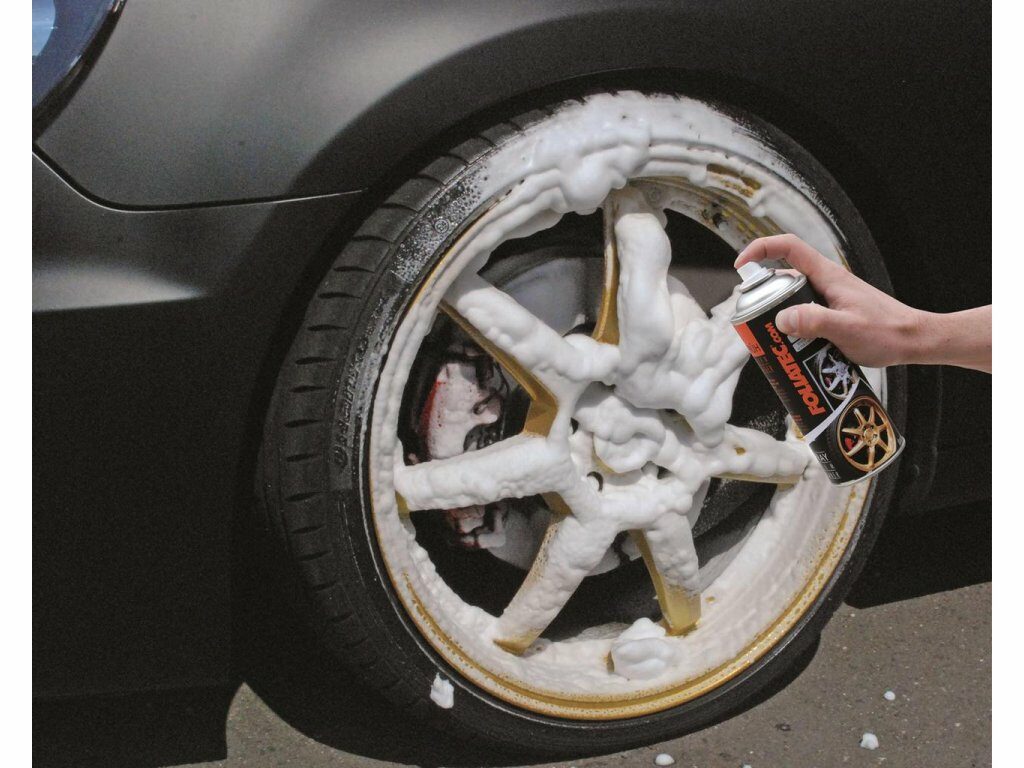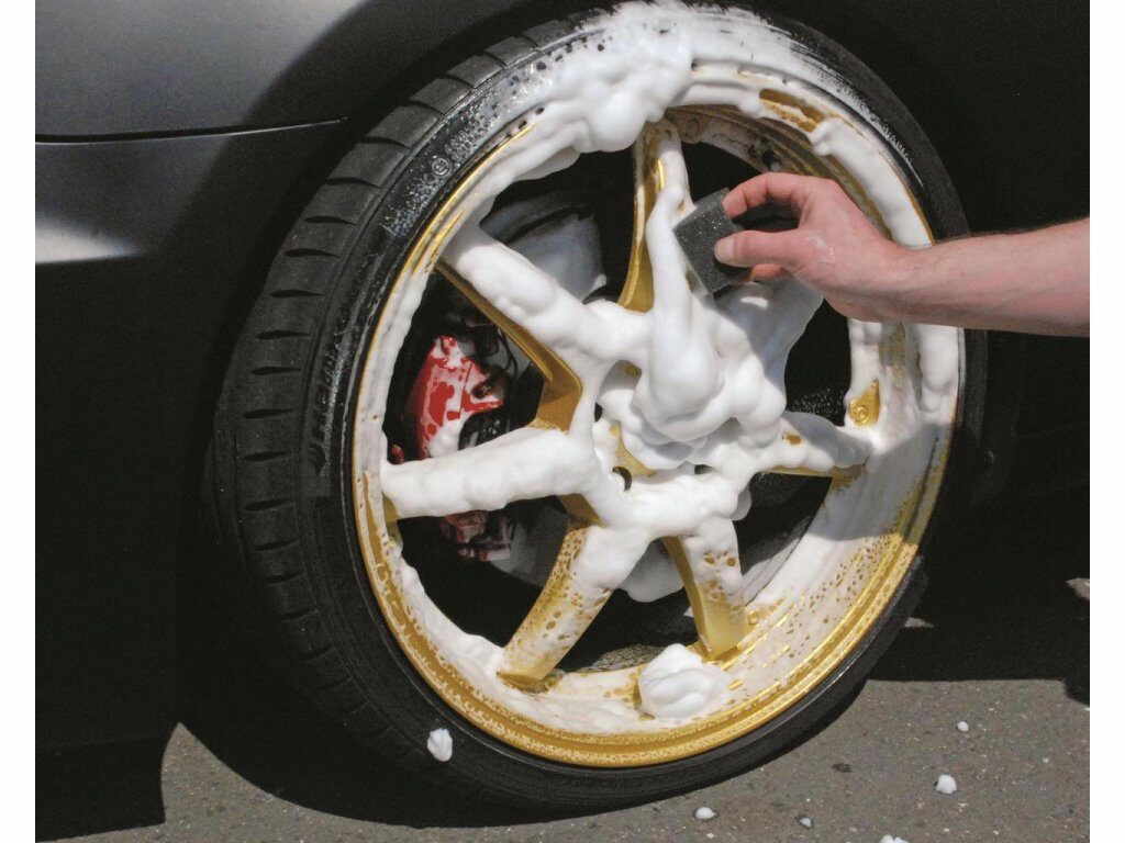 Je vhodný pro pravidelné čištění od silničních nečistot včetně brzdového prachu. Zabraňuje také následnému ulpívání nečistot na umyté fólii. Stačí nastříkat na kola a nechat působit nejvýše 2 minuty. Součástí balení je také houbička, kterou povrch následně otřete a odstraníte z něj tak uvolněné nečistoty. Poté stačí kola už pouze opláchnout vodou a těšit se opět ze zářivé barvy, jako by byla fólie čerstvě nastříkána.