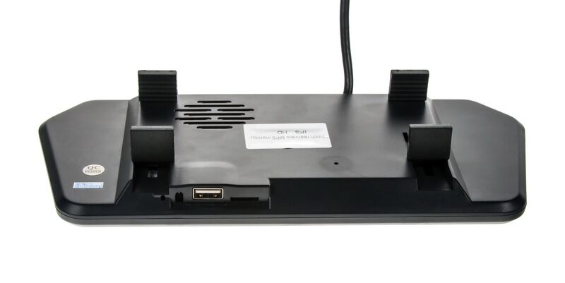 LCD monitor 7“ určený k upevnění na zpětné zrcátko. K monitoru je možné připojit 2x libovolný externí zdroj kompozitního video.