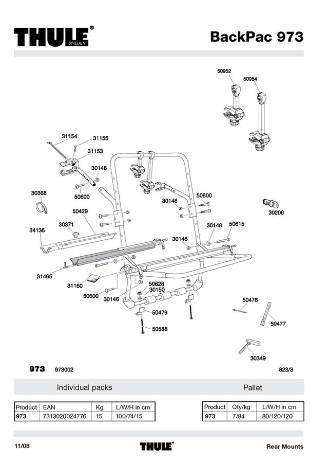 Nosič jízdních kol Thule BackPac 973 s uchycením na zadní dveře nabízí praktické přepravní řešení - velmi snadno nosič složíte a připevníte. Thule BackPac 973 je velmi odolný a stabilní nosič určený pro přepravu kol na vanech a jeepech. Při převozu jízdních kol nezakrývá zadní světla ani registrační značku.
