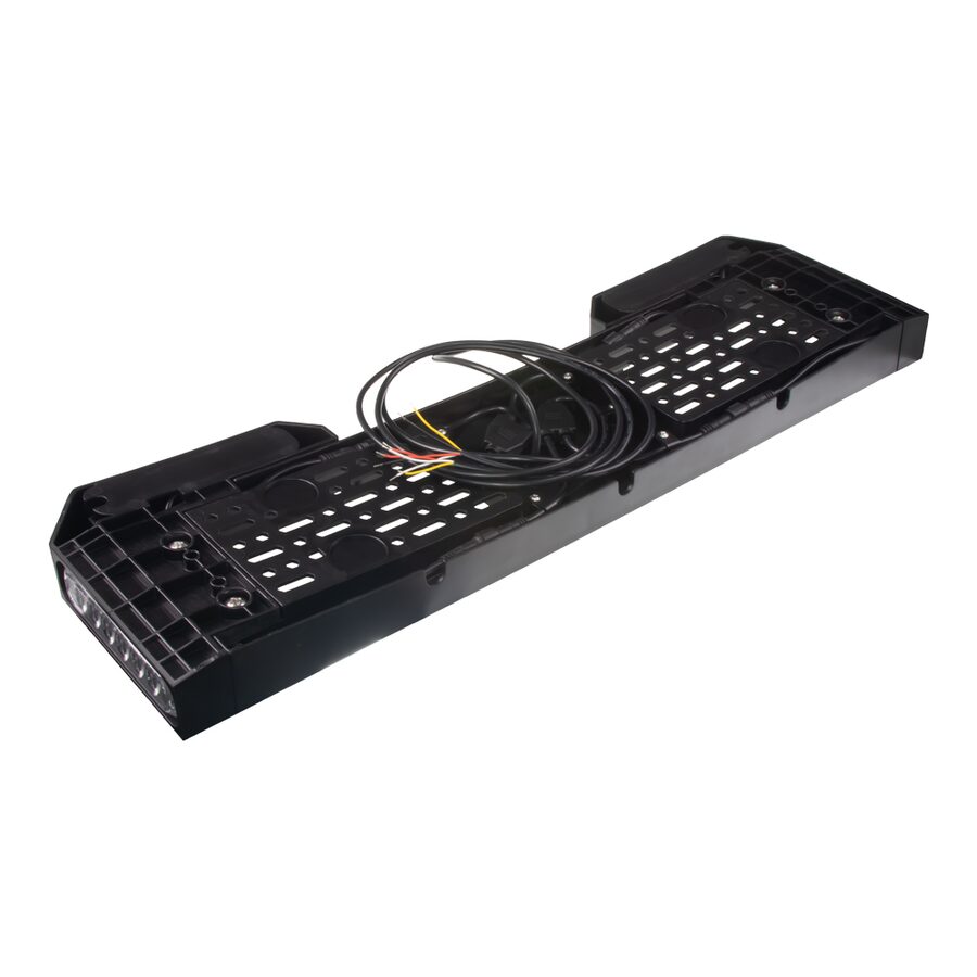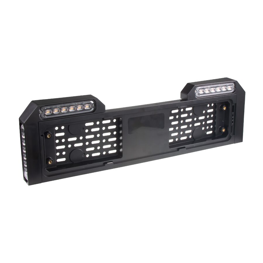 Podložka pod SPZ s vestavěnými oranžovými LED výstražnými světly.