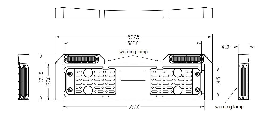 Součástí podložky jsou 2 horizontálně a 2 vertikálně umístěná oranžová výstražná světla.