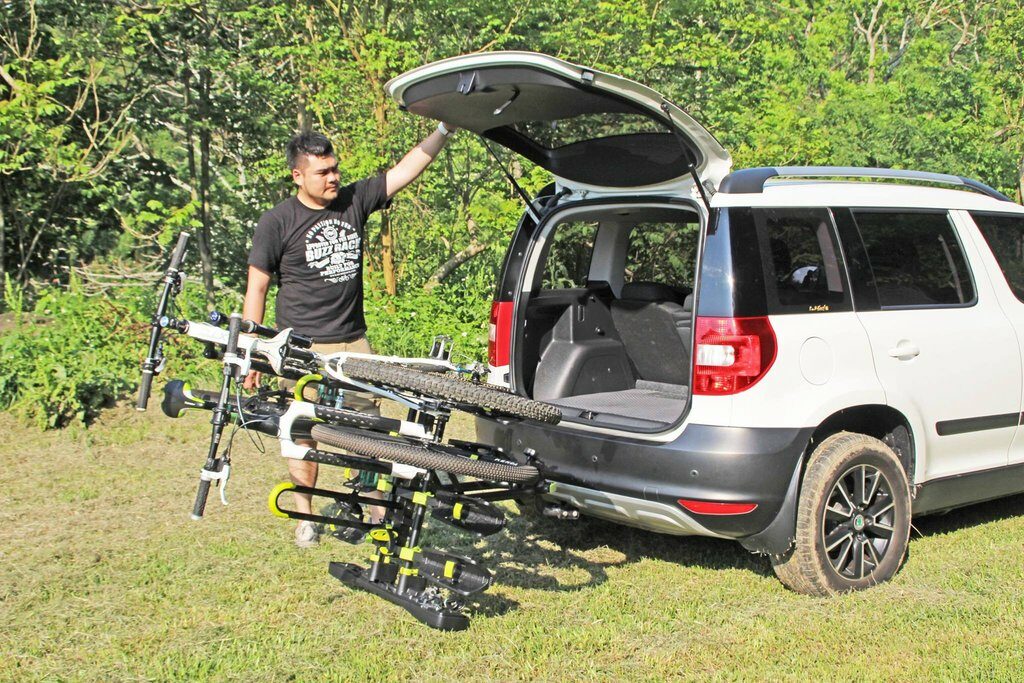 Nosič i s jízdními koly je výborně vyvážený a při sklopení zabezpečuje dostatečně široký přístup do kufru automobilu.