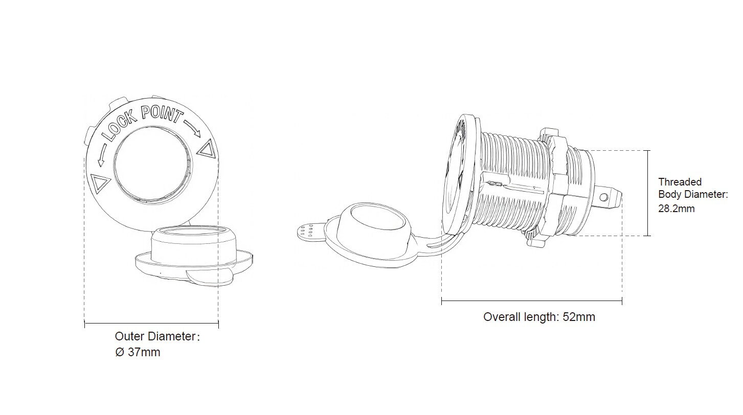 CL zásuvka pro zabudování do panelu s modrým podsvícením.