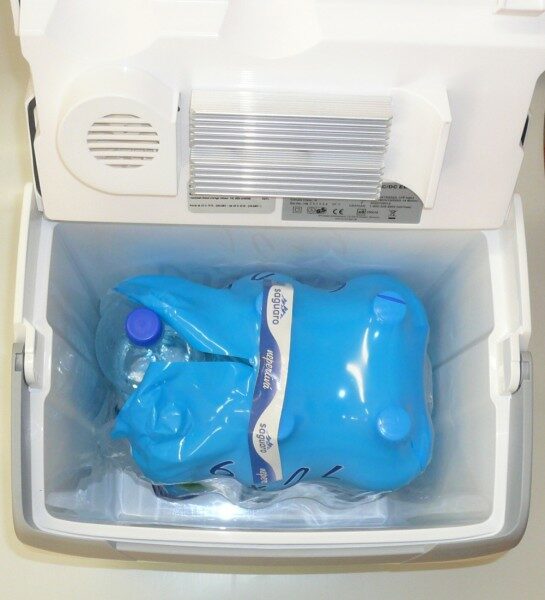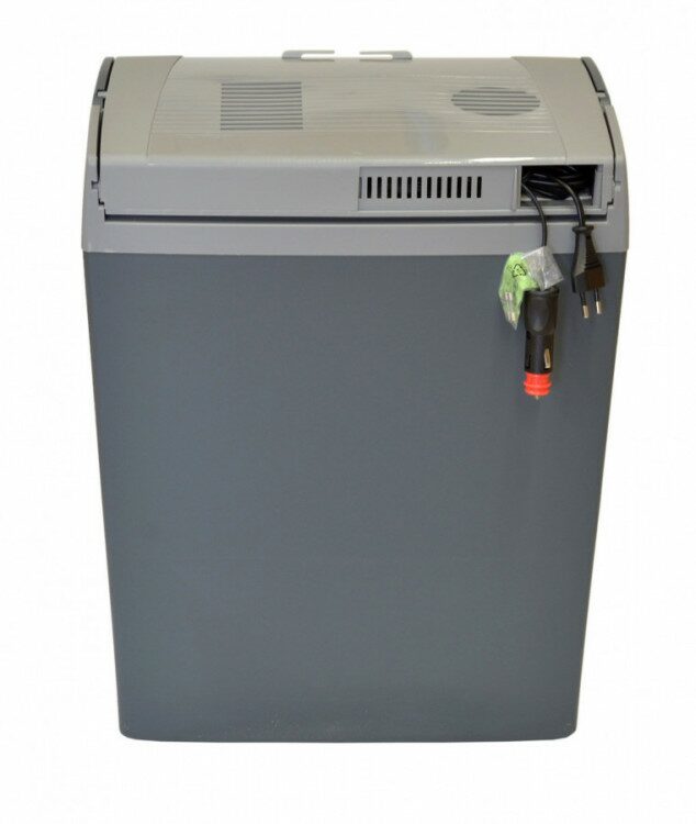 Autochladnička E32 s objemem ca 30 litrů a s možností manuální regulace teploty při napájení z 230V A++ a s úchyty pro připoutání bezpečnostním pásem.