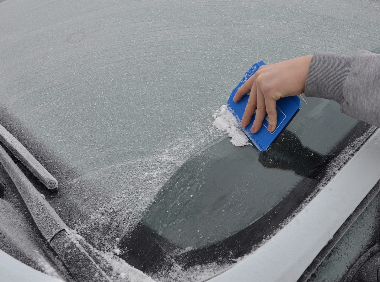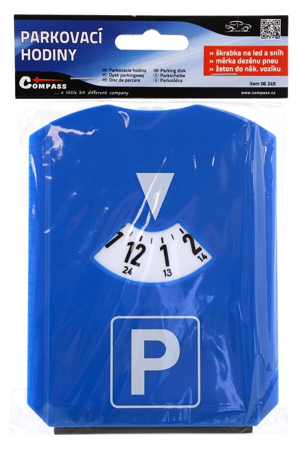 Tři hrany parkovacích hodin jsou provedeny jako břity škrabky, kterou lze použít na sníh, led a stranu s gumovým břitem i na vodu.