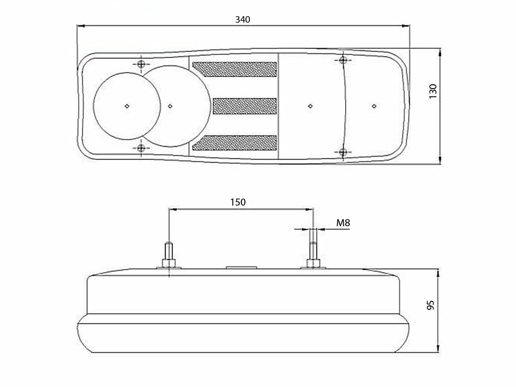 Zadní sdruženéá světlo levé FT-94. typ připojení: bajonet (6 pin) napětí 12/24 V Funkce: světlo směrové, brzdové, obrysové, mlhové, couvací, osvětlení rz (spz) zespodu.