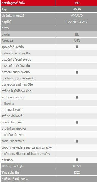 - Sdružené světlo W29P (190) s couvacím světlem, WAS
