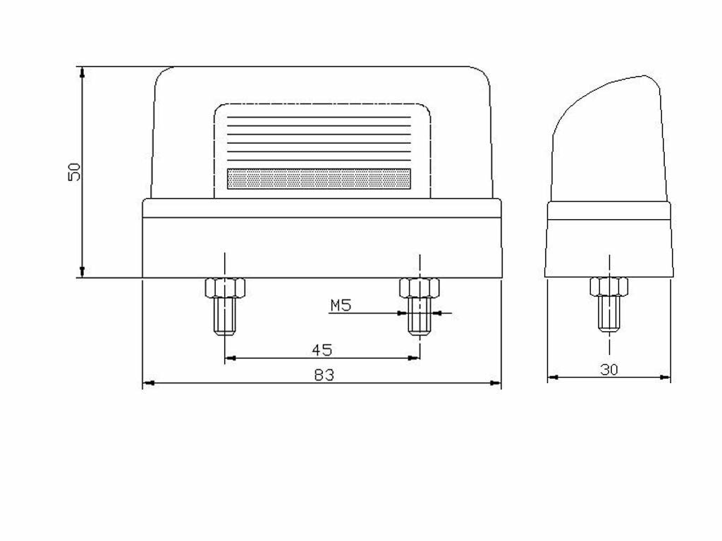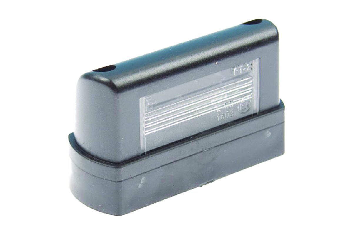 Lampa FT 22/1 osvětlení registrační značky (SPZ). Boční Barva:černá Uuniverzální strana montáže, včetně upevňovacích šroubů Napětí: 12/24V Rozměry: 83 x 30 x 50 mm, rozteč: 45 mm Na sufitku 5W.