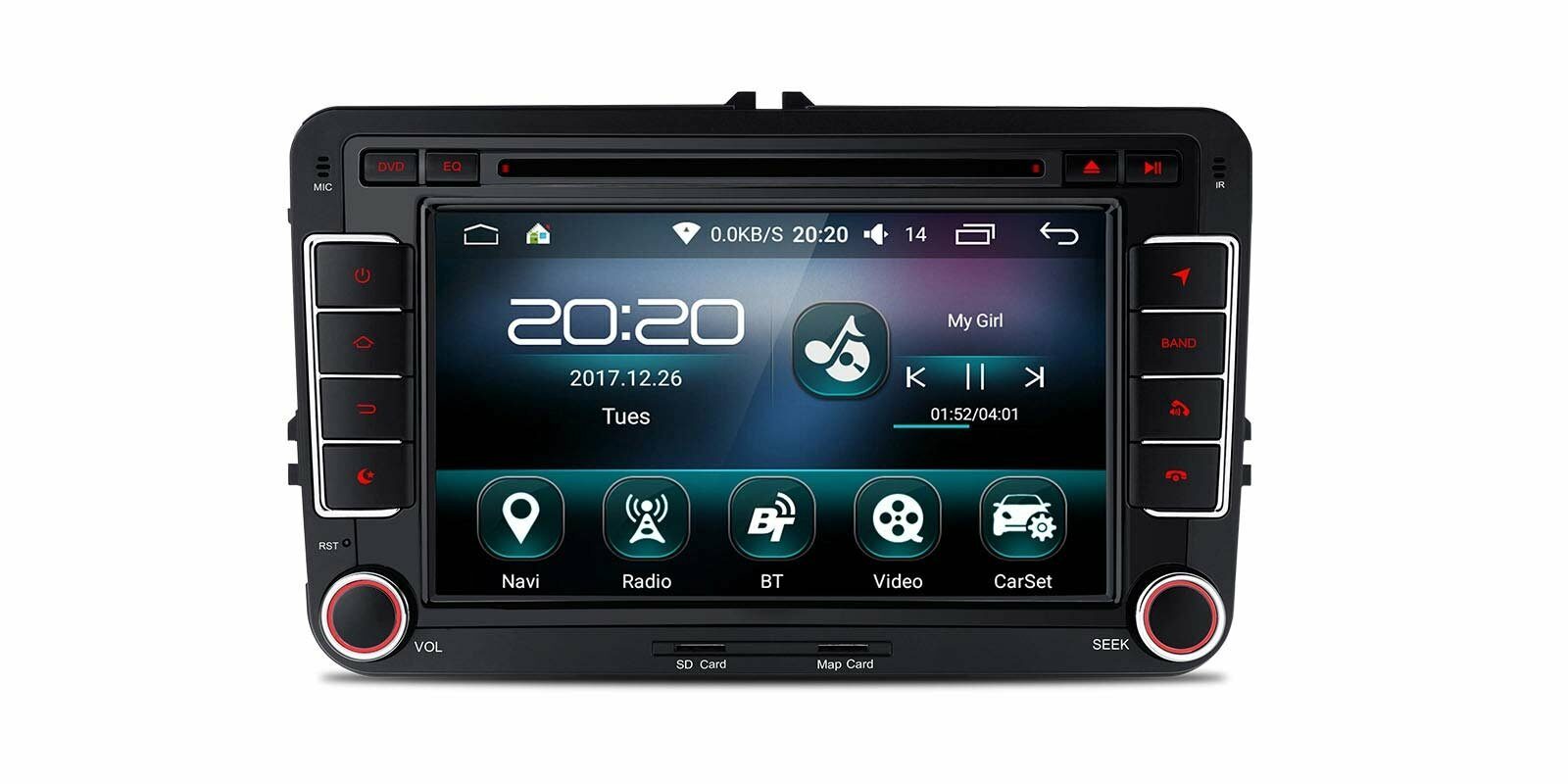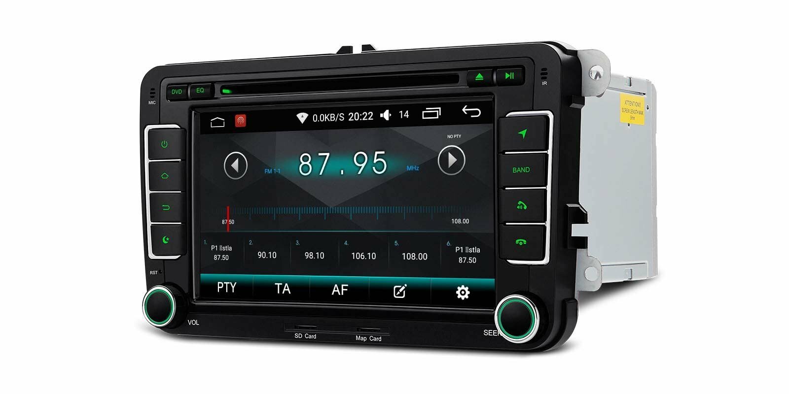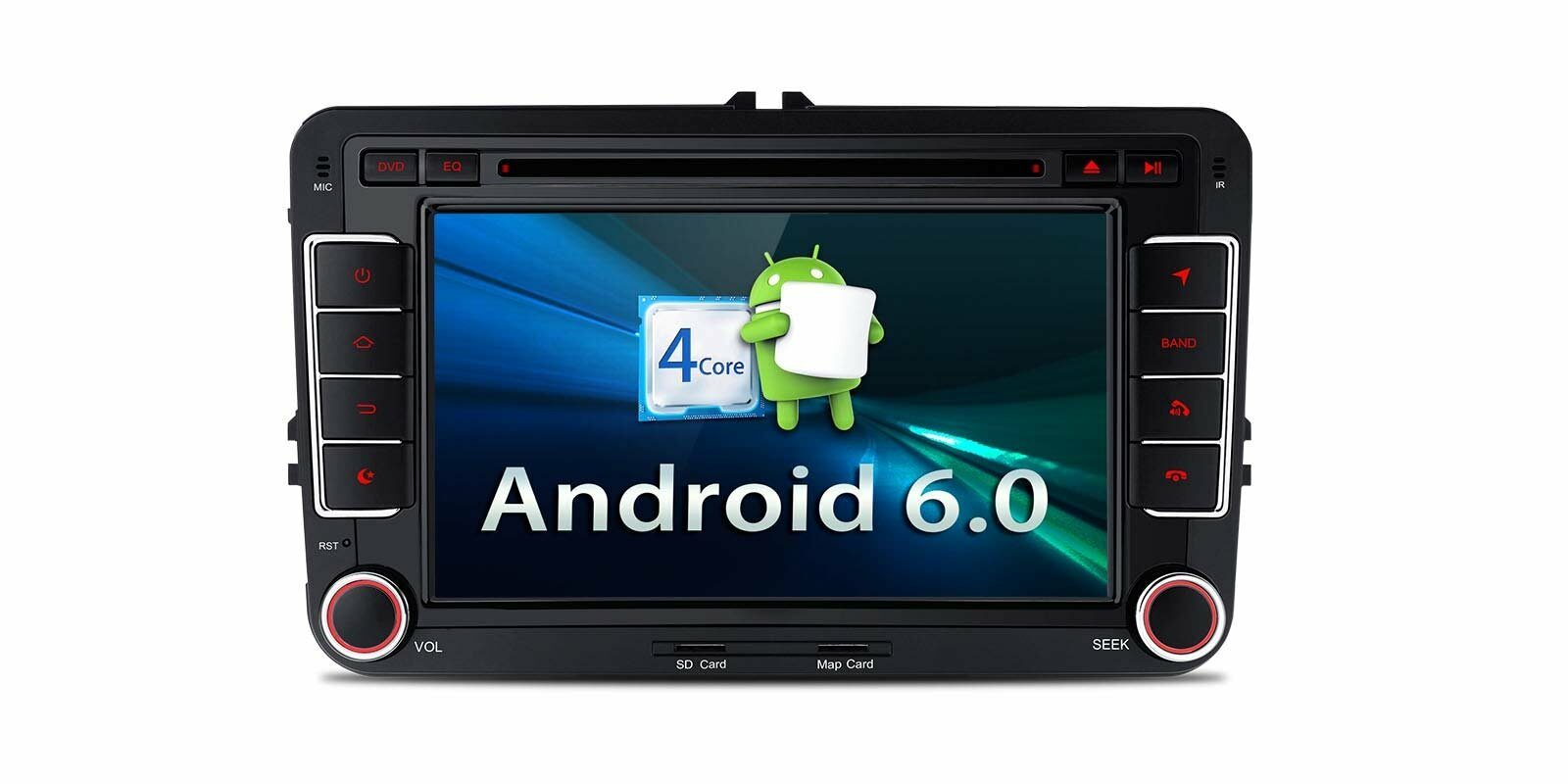 2 DIN autorádio určené pro vozy Volkswagen, Seat, Škoda - 7" HD dotykový displej, GPS, Bluetooth, Wifi, 3G, OS Android, RDS, USB, DVD, slot pro SD kartu.