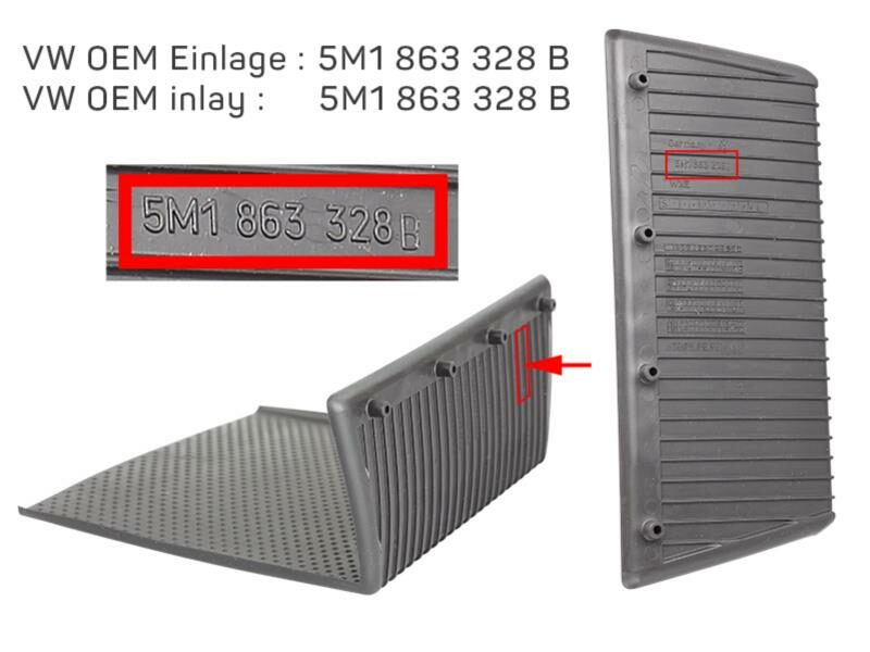 Upozornění: lze použít pouze pro vozy s OEM přihrádkou VW obj.č.: 5M1 863 328 B (číslo je na zadní straně přihrádky, viz. foto 4)