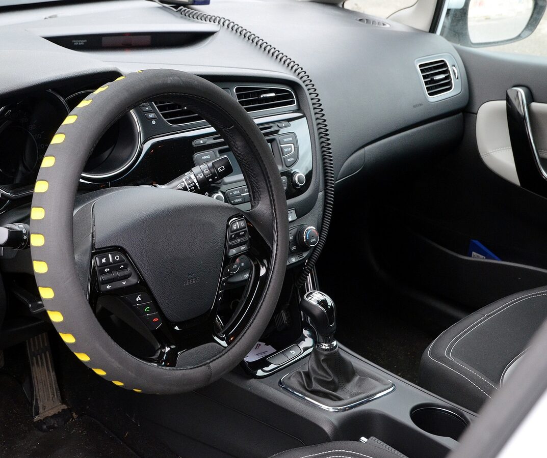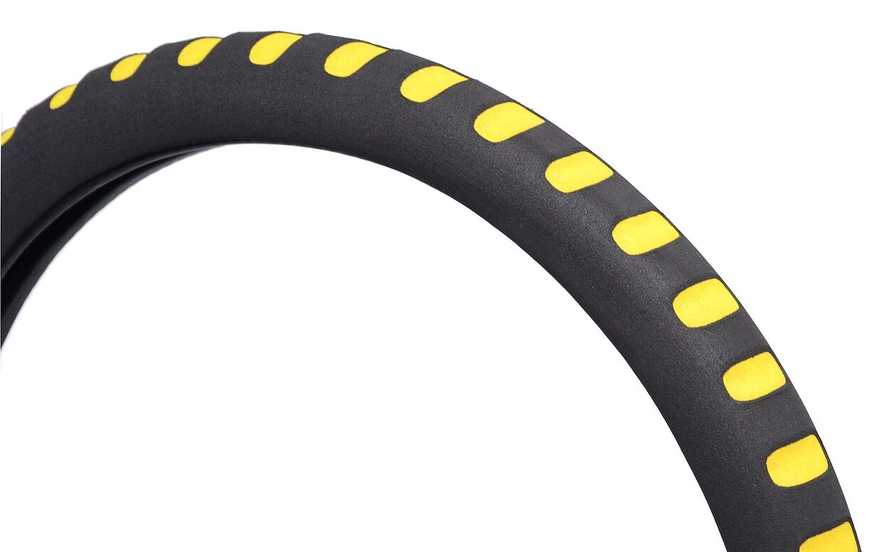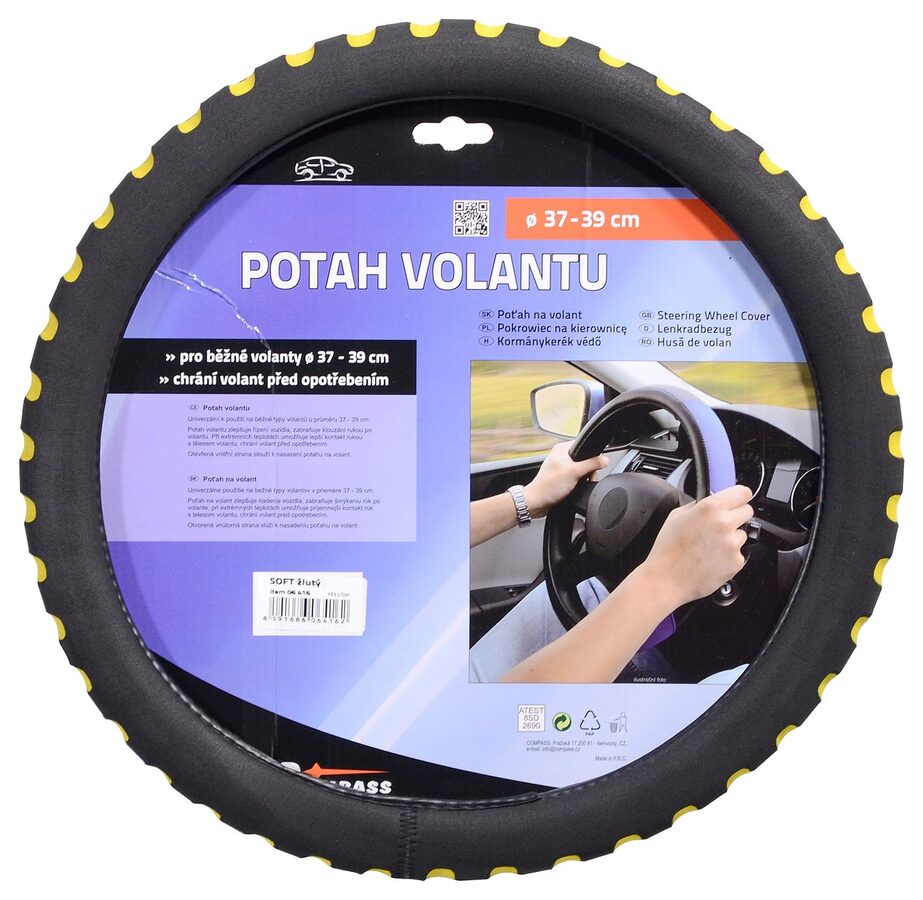 Pěnový potah určený k nasazení na volant o průměru 37-39cm. Příjemný do ruky. Barva černá s modrými prolisy. Výrobek je shodný s typem schváleným MD ČR, č.osv. 2690.