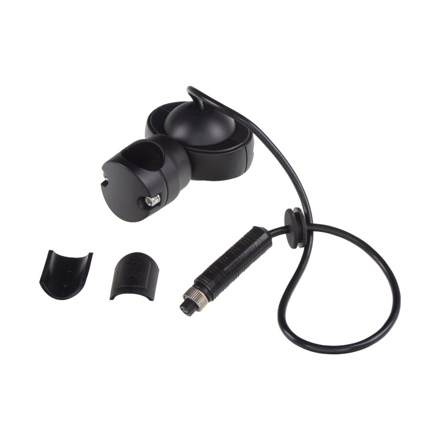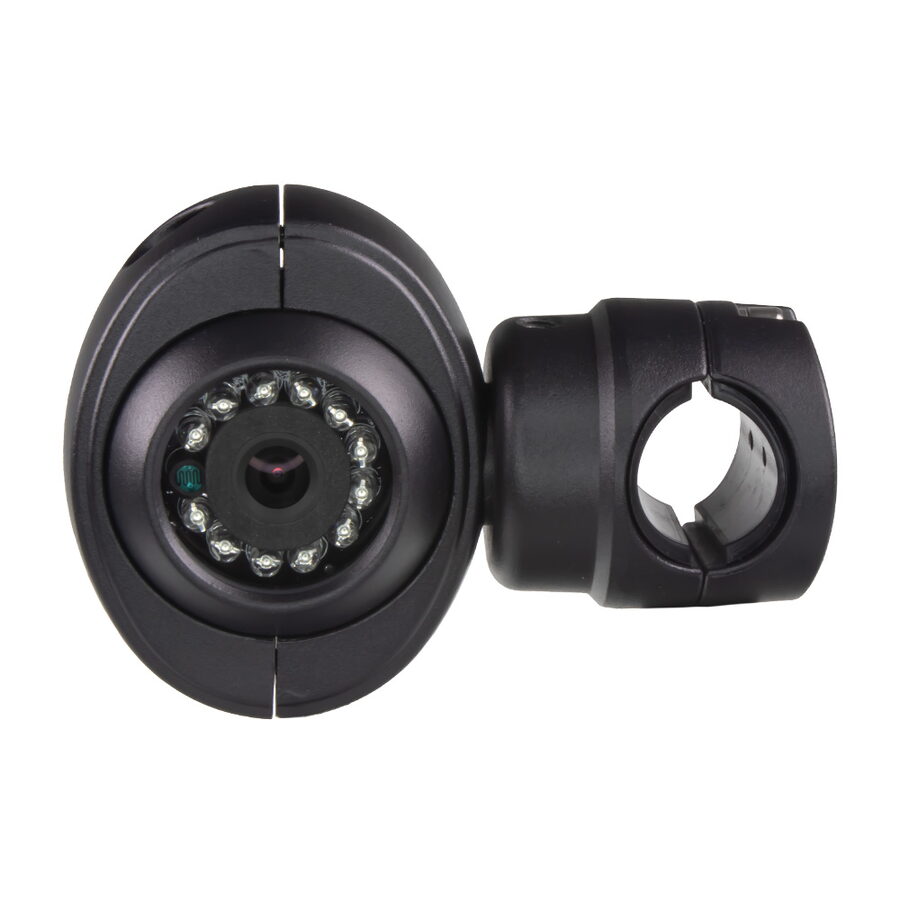 AHD kamera CCD s IR světlem a HD rozlišením (960P), vnější, určená pro montáž na trubku, především na konstrukci zrcátek s trubkovým rámem nákladních vozů, autobusů, karavanů či dodávek. Propojení 4-PINovým kabelem.