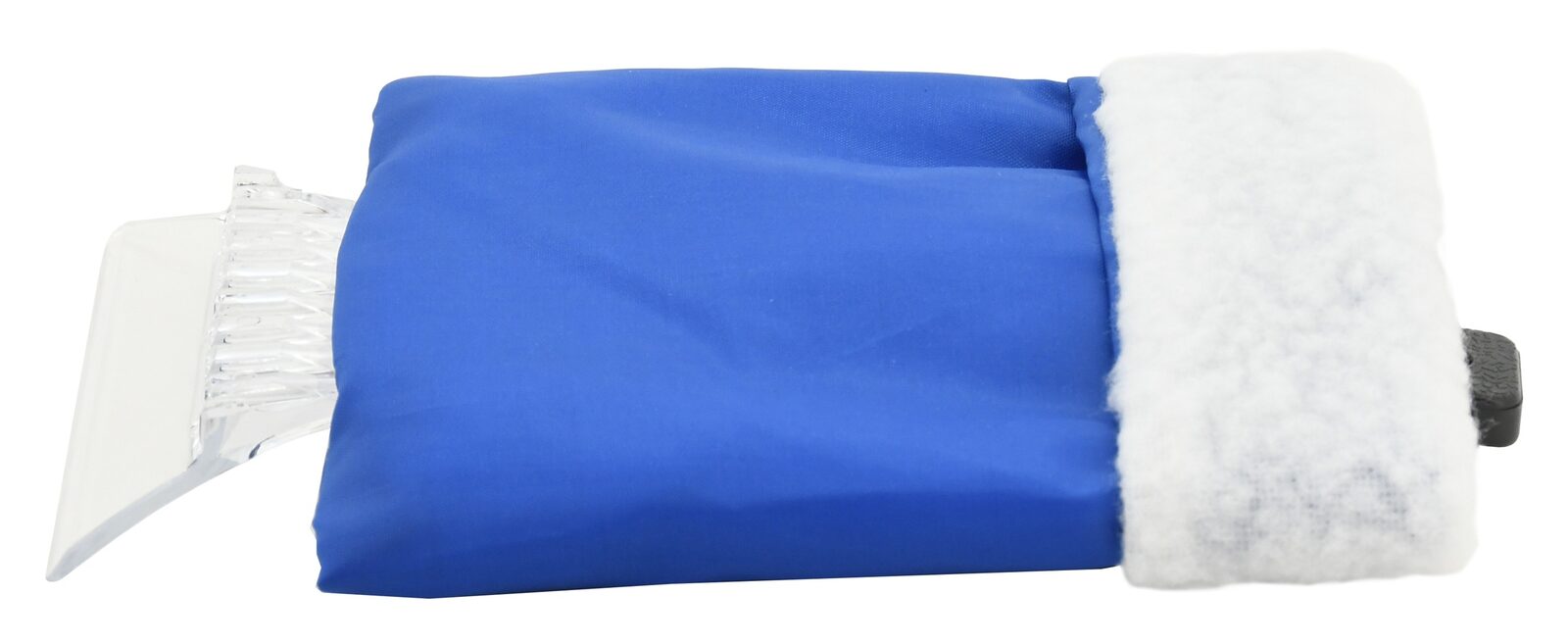 Škrabka s plastovým břitem v kombinaci s textilní rukavicí. Zamezuje prochladnutí ruky při čištění zamrzlého skla. Vnitřní strana rukavice s "kožíškem". Materiál plast + textil.