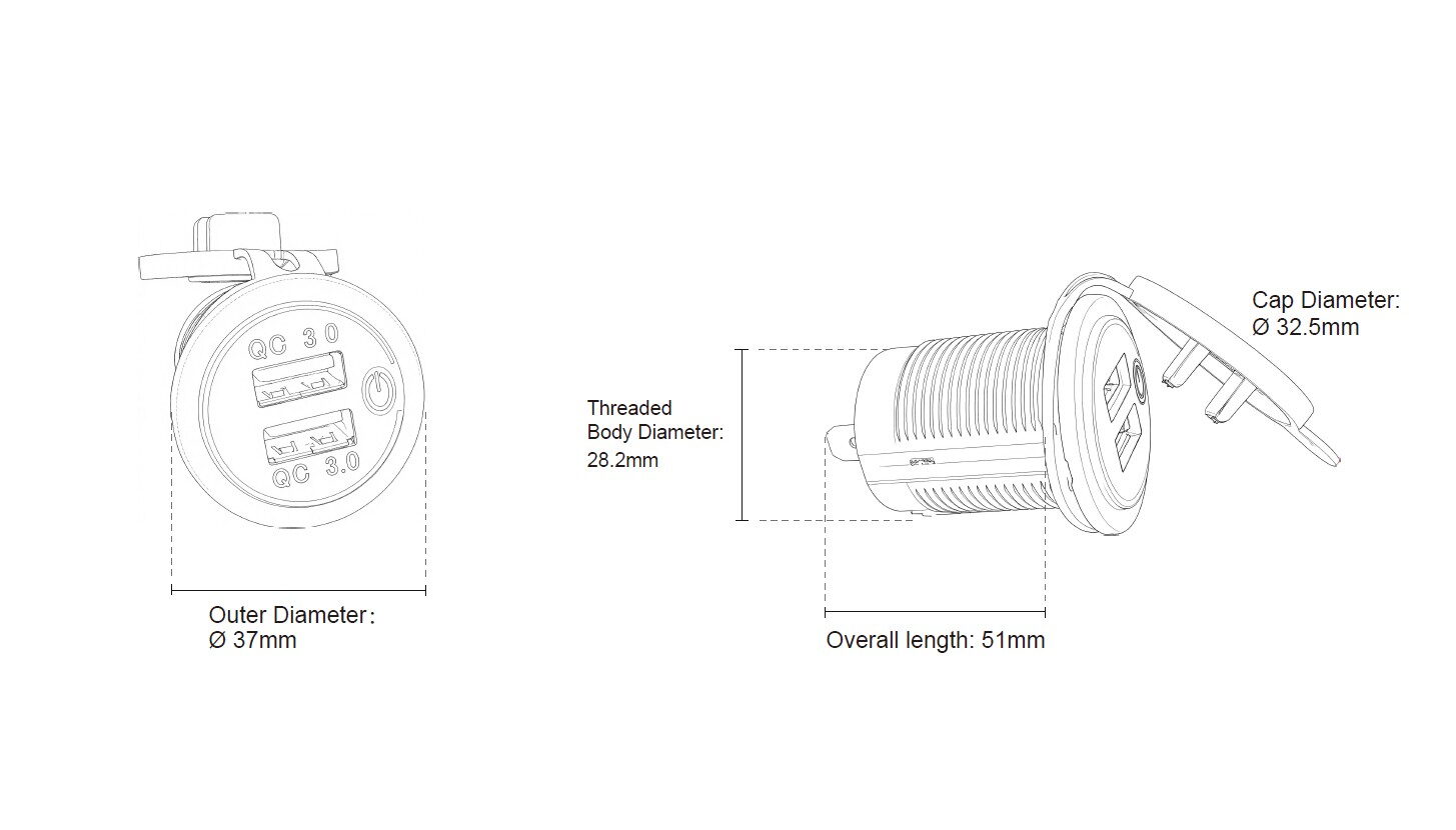 - 2x USB nabíječka voděodolná do panelu, QC3.0, modrá
