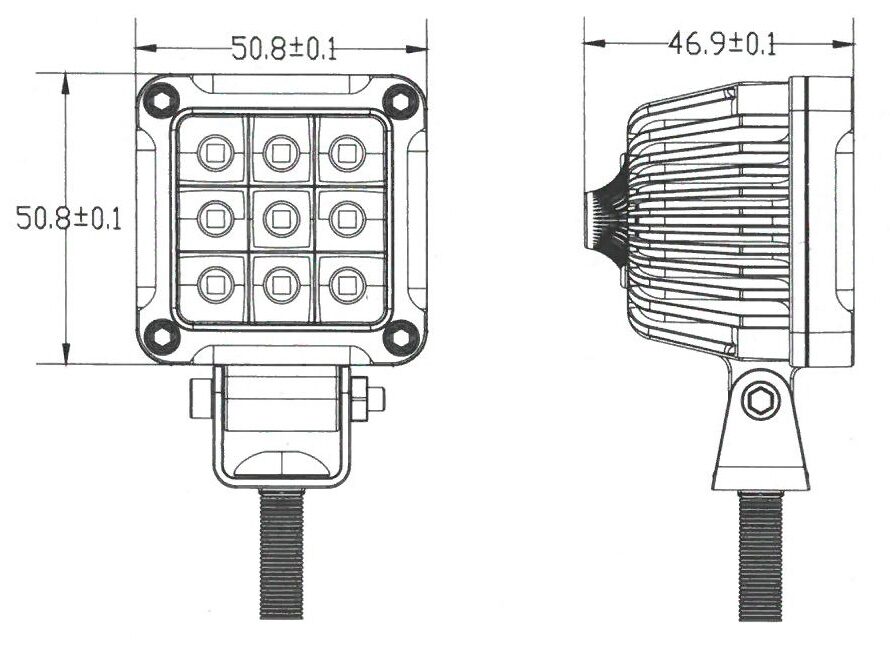 LED světlo na pracovní stroje, vhodné zejména pro nákladní automobily, bagry, nakladače, offroad vozy a jinou pracovní techniku.#n##n##n##n# #n##n##n##n#Technické parametry#n##n##n##n#- bodový paprsek světla (svítivost 1000 lm)#n##n##n##n#- velmi odolný hliníkový obal s kovovým držákem#n##n##n##n#- 9 x LED modul CREE, Epistar světla 6000 K#n##n##n##n#- výkon LED 27 W#n##n##n##n#- napájecí napětí 10-30 V#n##n##n##n#- proudový odběr 0,4 A (12 V), 0,8 A (24 V)#n##n##n##n#- odolnost proti nárazu, vodotěsné IP67#n##n##n##n#- uchycení na šroub, nerezový montážní úchyt#n##n##n##n#- životnost 30 000 h#n##n##n##n#- pracovní teplota -40 - +65° C#n##n##n##n#- hmotnost 145 g#n##n##n##n#- rozměry: 51 x 51 mm, hloubka 47 mm#n##n##n##n#- v balení je 1 ks světla