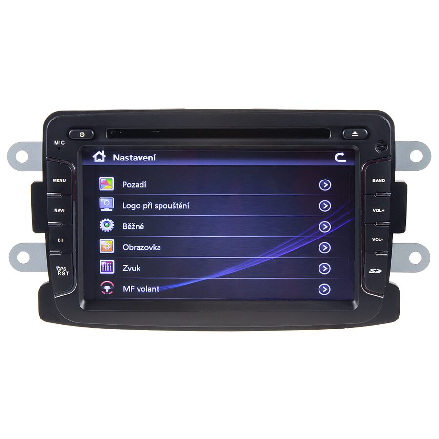Multimediální autorádio v OEM tvaru Dacia, Renault multicolorní podsvícením ovladačů, GPS