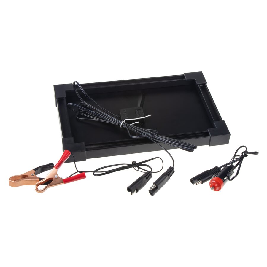 Připojení k baterii je rychlé a jednoduché, a to buď pomocí kabelu se svorkami na baterii, nebo kabelu se zástrčkou do cigaretového zapalovače, které jsou oba v příslušenství. U cigaretového zapalovače je třeba zjistit, zda je propojený s baterií i po vypnutí zapalování. Pokud se zapalovač po vypnutí klíčku odepne, nelze použít na dobíjení baterie. Solární nabíječka baterii nenabije víc než je potřeba, ani nemůže baterii vybít, protože má zabudovanou diodu proti zpětnému proudu, a je dokonce částečně funkční i při zatažené obloze.