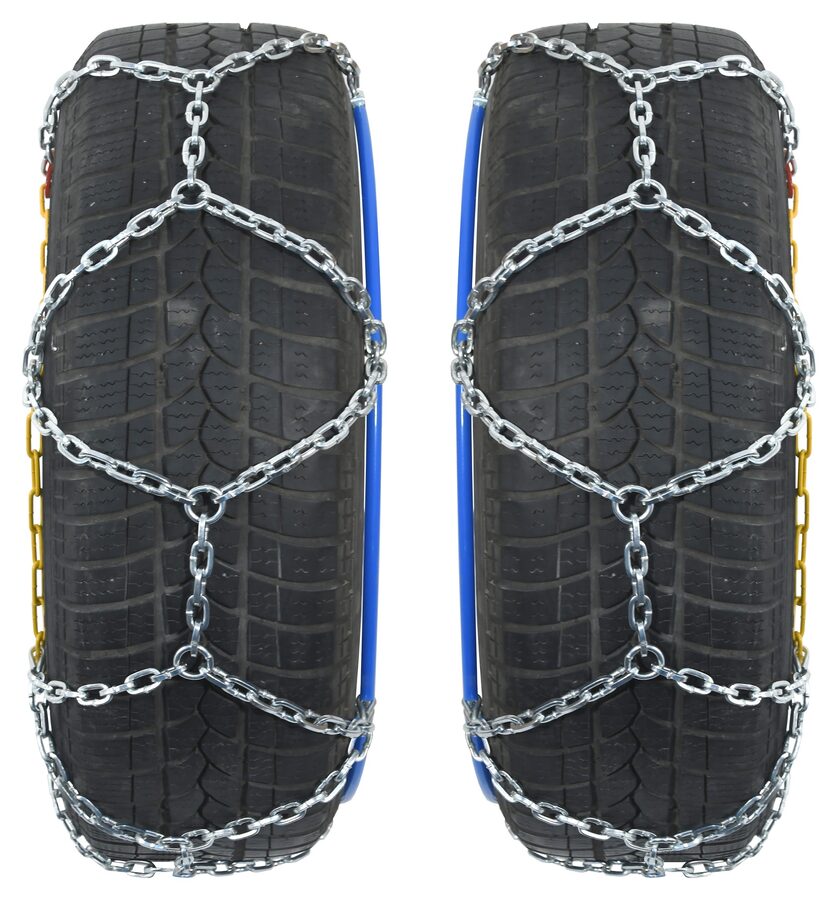 Sněhové řetězy se zesílenými oky, pro osobní vozidla do hmotnosti 2200 kg, splňující evropské normy včetně v Rakousku vyžadované "ÖNORM V 5117".