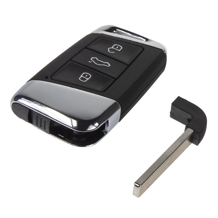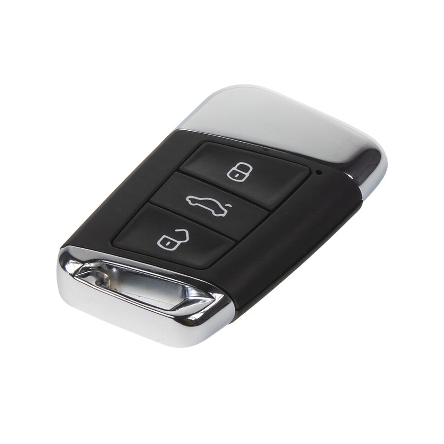 Náhradní autoklíč s dálkovým ovladačem pro vozy koncernu VW. Součástí klíče je planžeta, dálkové ovládání centrálního zamykání se třemi tlačítky a čip MQB48 pro imobilizér. Planžetu klíče je třeba nechat vyfrézovat podle tvaru originálního klíče, vyřezaný klíč s čipem je nutno naprogramovat do řídící jednotky vozu a dálkové ovládání je třeba spárovat s komfortní jednotkou vozu.
