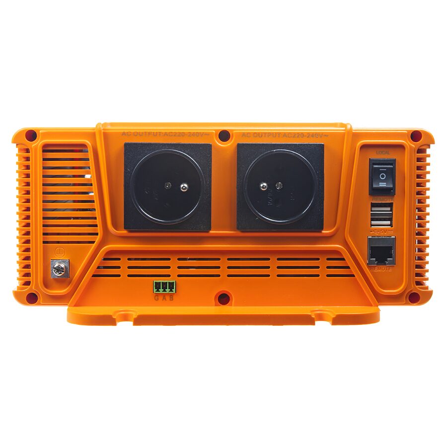 Tento měnič je navíc vybaven USB výstupy pro nabíjení USB zařízení (telefon apod.). Pomocí tlačítek lze nastavovat hodnoty funkcí: hodnotu nízkého napětí, kdy dojde k odpojení akumulátoru, hodnotu napětí obnovení, nastavení ochrany při přepětí, hodnota povoleného přetížení.