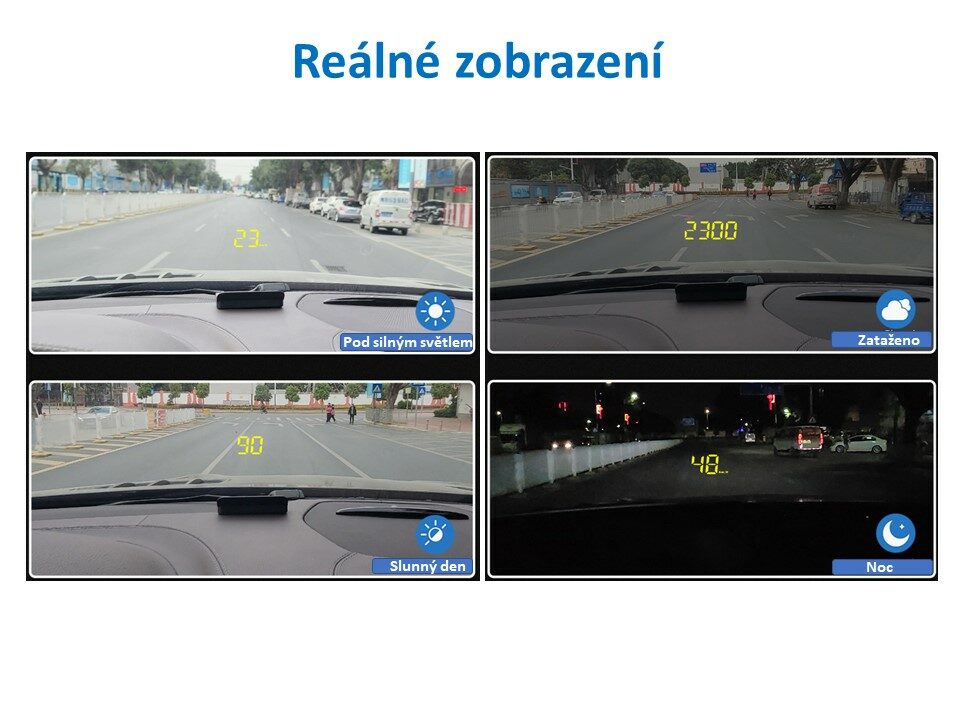 Systém s projekčním HUD displejem s vysokou čitelností, během jízdy systém promítá údaje o rychlosti nebo jednu z 10 veličin do zorného pole řidiče přímo na přední sklo. Systém se připojuje pouze do OBD zásuvky.