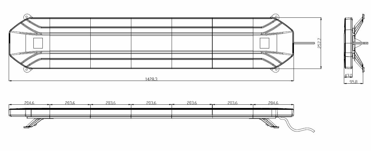 • rozměry: 1427 x 257 x 43 mm (výška včetně držáku 95,8 mm)
