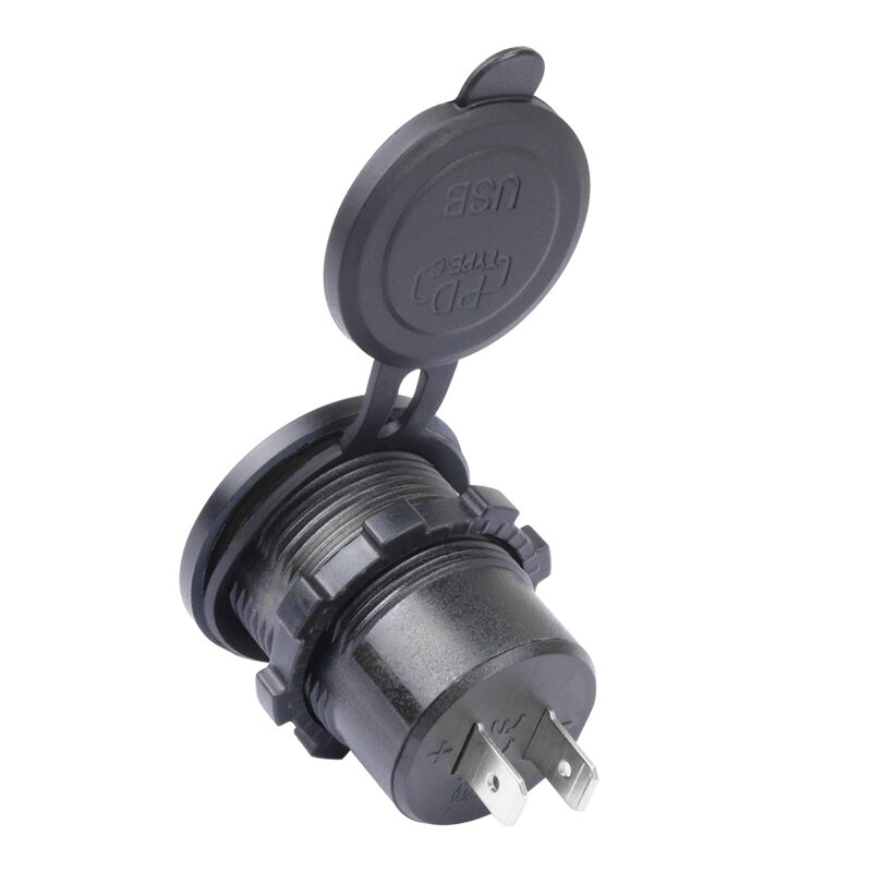 USB nabíječka do panelu, QC3.0 + USB-C, s krytkou proti prachu a vlhkosti.