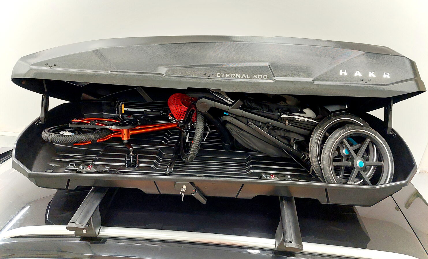 Ve střešním boxu Eternal 500 snadno přepravíte mnoho objemných zavazadel stejně jako lyže nebo snowboardy do délky 190 cm.